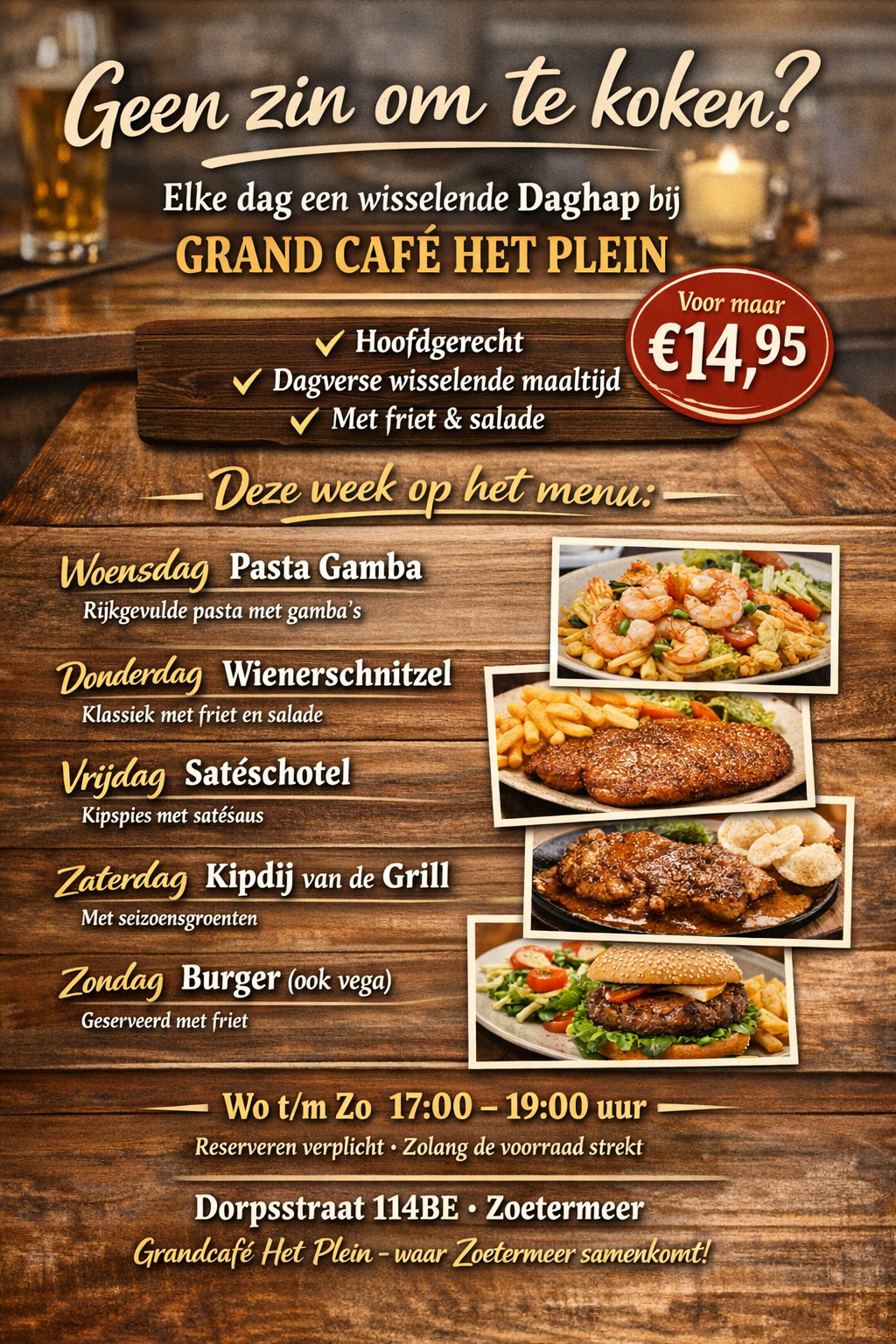#daghap #grandcafehetplein #zoetermeer #geenZinOmTeKoken #uiteten #weekmenu #gezelligeten