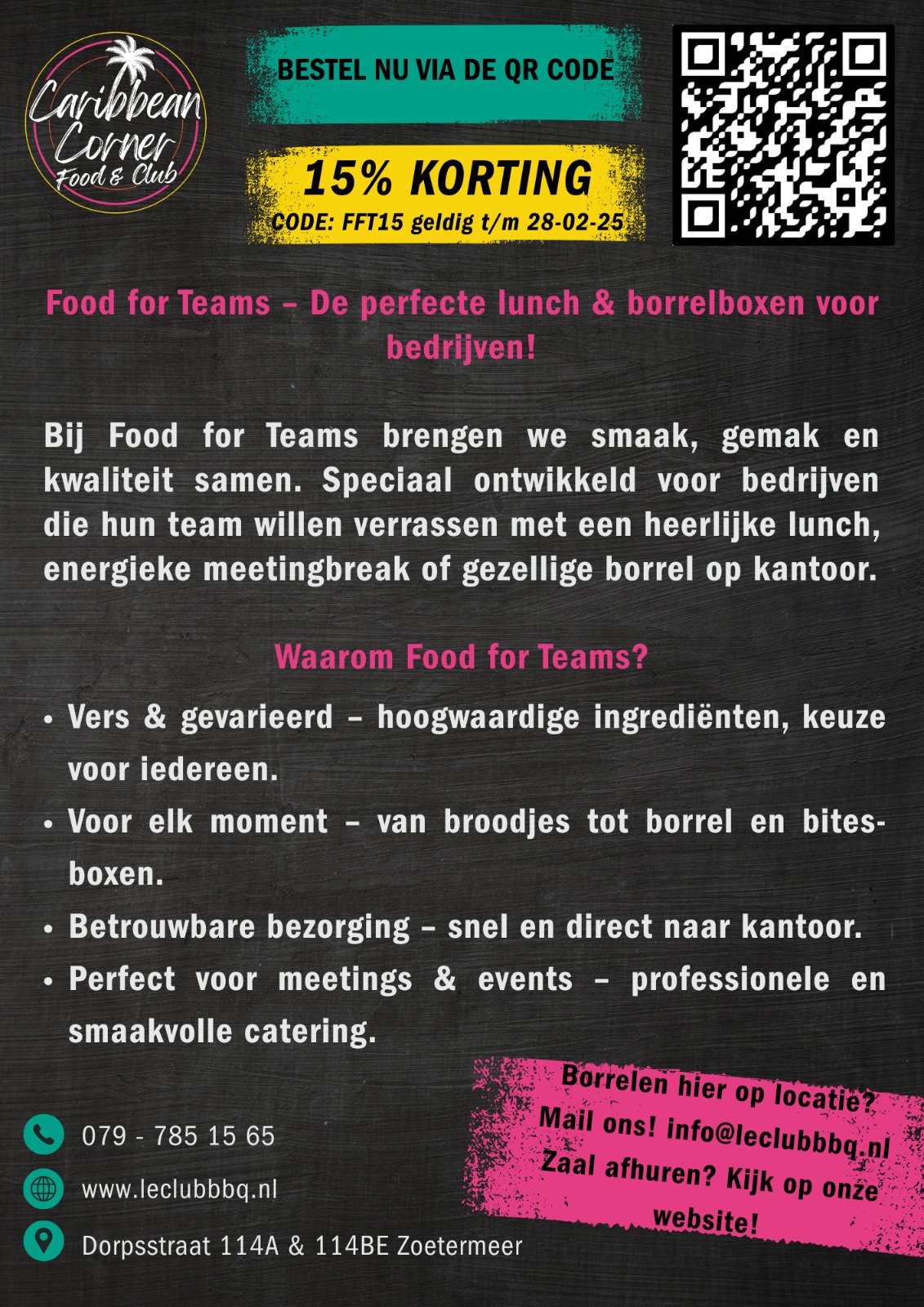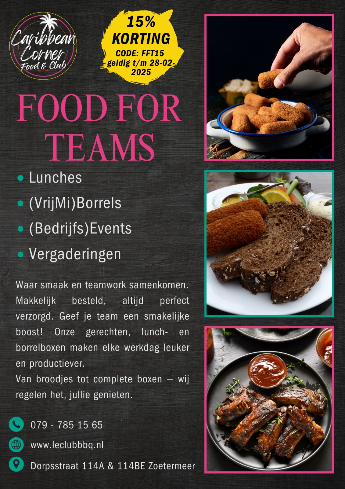 Food for Teams is onderdeel van Caribbean Corner (eerder Le Club BBQ) en combineert onze